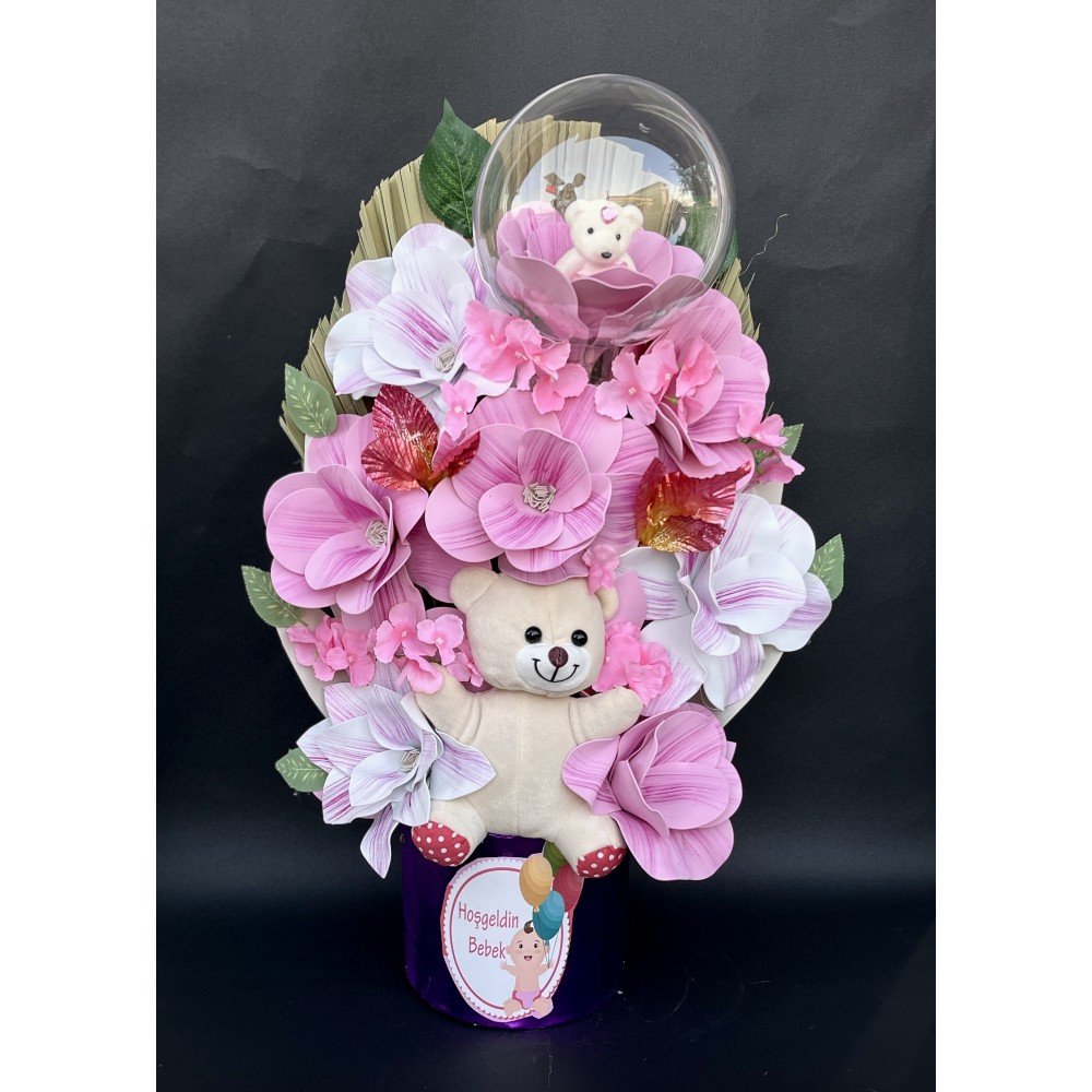 Özenle seçilen çiçekler ve şık tasarımıyla hem hastane odasında dikkat çeker hem de uzun süre saklanabilecek anlamlı bir hatıra olur. Kız bebek doğumları için ideal olan bu ürün, sıcak ve samimi bir “hoş geldin” mesajı verir.