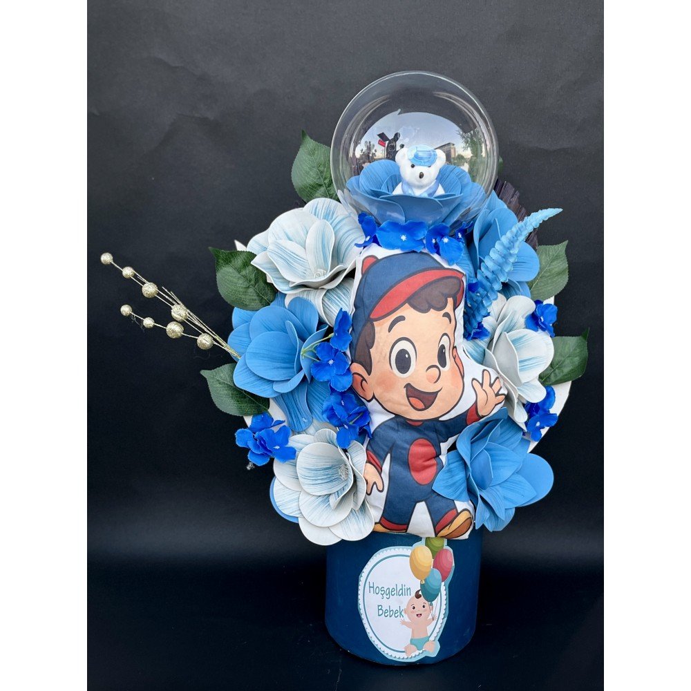 Yeni doğan erkek bebeğin mutluluğunu modern ve şık bir sunumla ifade eden Silindir Kutuda Erkek Bebek Doğum Çiçeği, zarif tasarımı ve sevimli erkek bebek figürüyle özel anlara anlam katar. Silindir kutu formu sayesinde hem estetik hem de dekoratif bir görünüm sunan bu aranjman, uzun süre hatıra olarak saklanabilir.