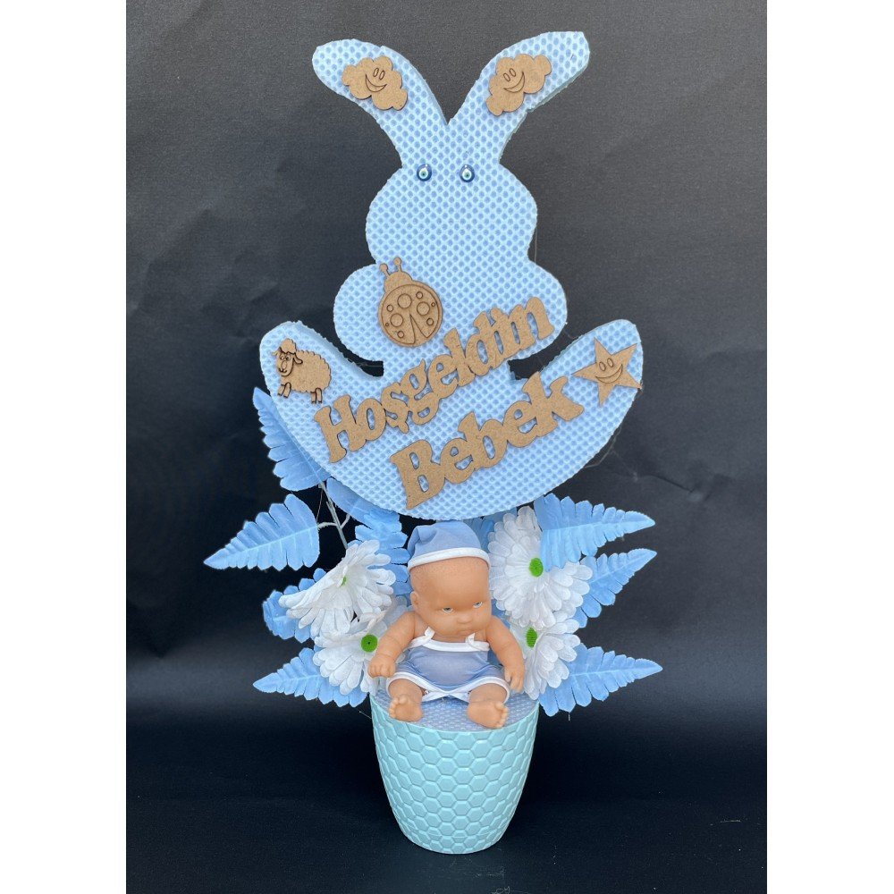 Strafor Tavşanlı Erkek Bebekli Yapay Çiçek