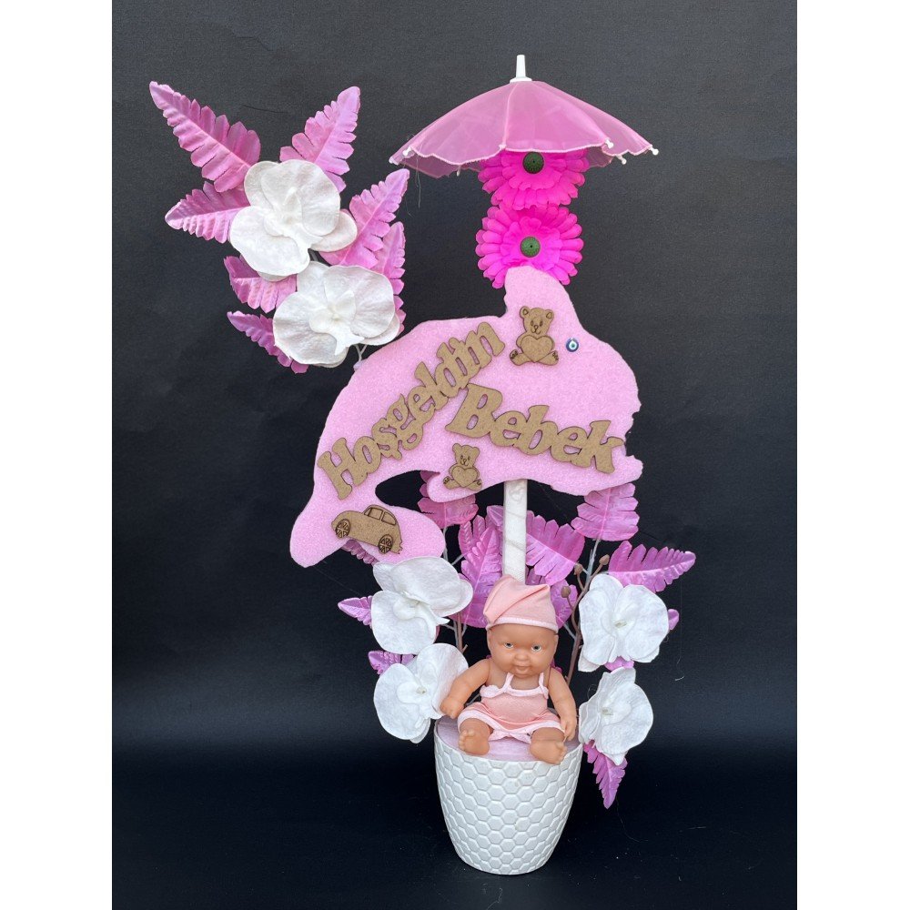 Şemsiyeli Kaptan Şapkalı Kız Bebekli Yapay Çiçek