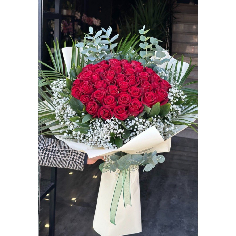 51 adet taptaze kırmızı gülden oluşan bu şık isteme çiçeği, özel günlerinize anlam katar. Kaliteli ve gösterişli tasarımıyla sevdiklerinize en özel duyguları yan