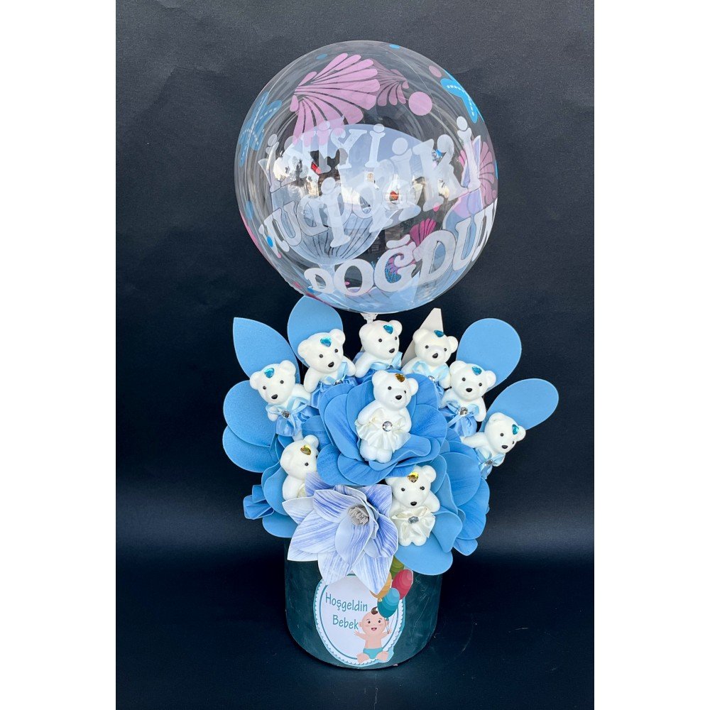 Özel Tasarım Balonlu Ayıcıklı Bebek Çiçeği